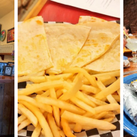 Monterey Jack cheese, pinto beans and rice wrapped in a flour tortilla and topped with New Mexican red or green chili sauce and sour cream.